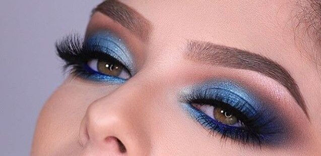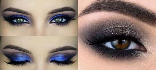 آرایش اسموکی با ترکیب مشکی و بلو، برای شب ایدهآل. برای عروس، گرادیان از روشن به تیره. آرایشگران پیشنهاد میکنند با خط چشم طلایی ست شود تا درخشش دوچندان شود.