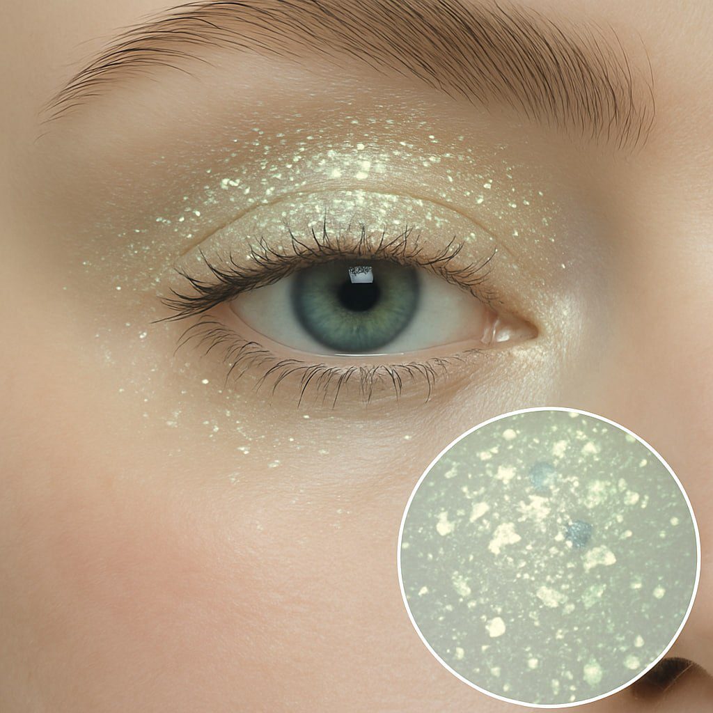 قلب تپنده این سایه چشم، در هارمونی و هماهنگی بسیار لطیف میان رنگ سفید درخشان و ته مایه ای بسیار محو و نامحسوس از سبز گیاهی و مغز پسته ای نهفته است. این ترکیب رنگی هوشمندانه و دقیق، نه آن سفیدی یخی و تند و تیز را ایجاد می کند و نه آن سبزی پررنگ و غلیظ را؛ بلکه نتیجه نهایی، یک درخشش شفاف، مرواریدی و طبیعی است. این رنگ دقیقاً یادآور درخشش قطرات شبنم بر روی برگ های تازه و جوان در یک صبح زود بهاری است. این افکت نوری خاص، چهره را بازتر، چشم ها را روشن تر و نگاه را بسیار شاداب تر و بیدارتر نشان می دهد و گزینه ای بی نظیر برای استفاده در فصل های بهار و تابستان محسوب می شود.